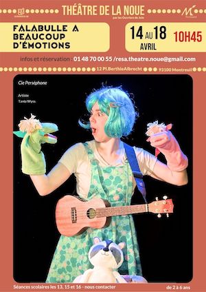 Cie Perséphone14 au 18 avril 2026 – 10h45 – 40 minutesLes enfants de 2 à 6 ans et leurs doudous « Oh non ! Mon ami Rêveur s’est mis à bouder, il est super énervé ! Est-ce que tu peux nous aider à nous réconcilier ? » Tu sais, moi aussi parfois j’ai du chagrin et un …