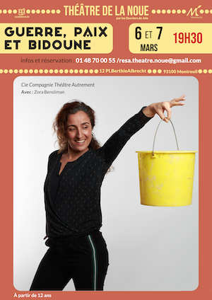 Compagnie Théâtre Autrement6 et 7 mars 2026 – 19h30 (1h15)À partir de 12 ans. Entre rires et vérités, un voyage émouvant et hilarant à travers une double culture, où une guerre profondément intérieure croise une quête de paix. À travers l’humour, la chanson et des tranches de vie, Zora Bensliman invite le public à réfléchir …