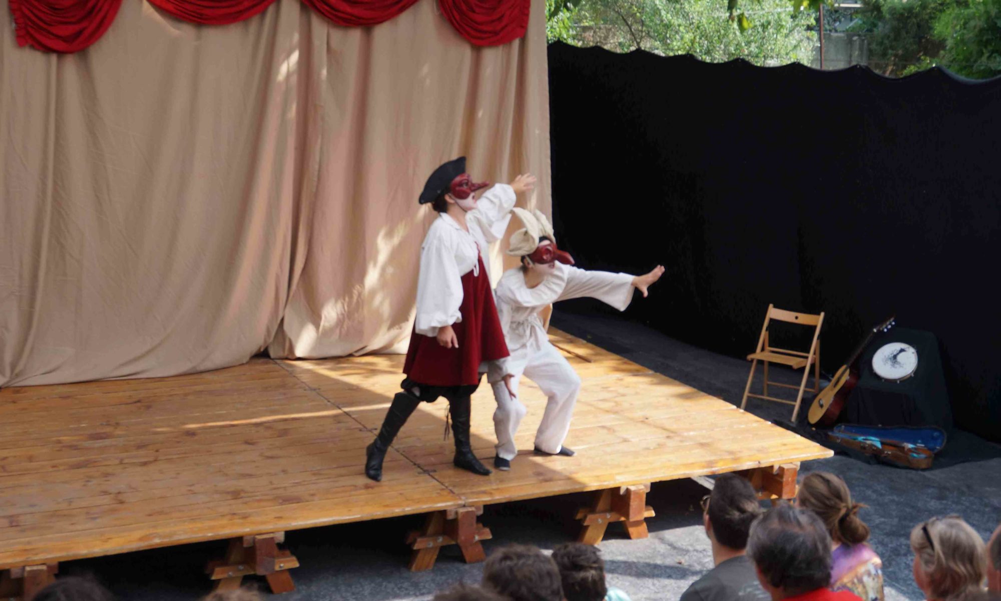 Vous allez découvrir le système d’improvisation propre à la commedia dell’arte, les 15 personnages standards, les techniques de base du masque et du chœur en commedia. On s’appuiera sur la création de « personnage corporel », enraciné dans ses rapports aux autres personnages. Ceci permet de se libérer du “psychologisme” tout en gardant une vérité émotionnelle – jouer “avec ses tripes”, aussi bien pour les personnages masqués que non-masqués.