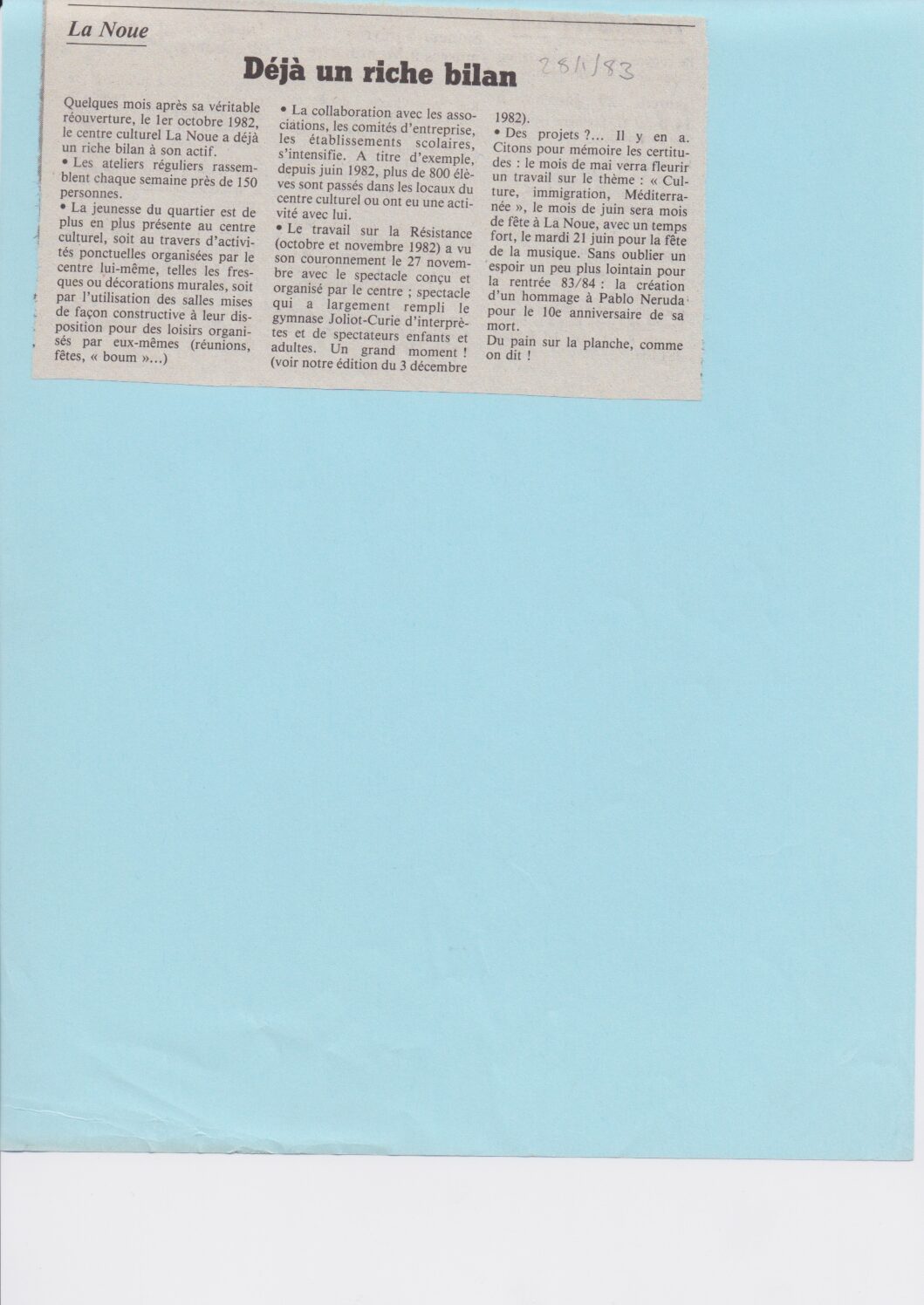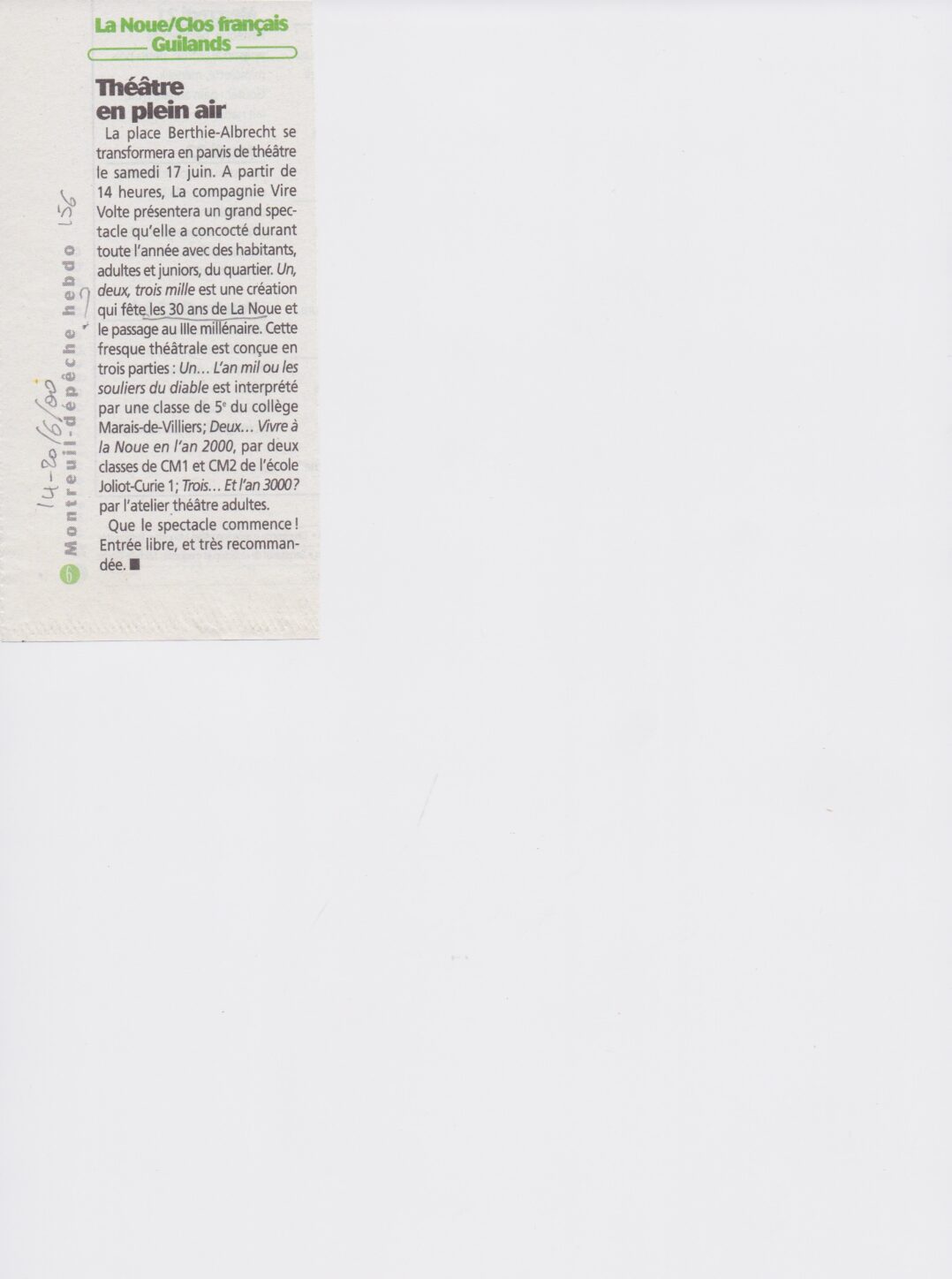 50 articles de presse sur l’art et la culture dans le quartier de la Noue ! A l’occasion de l’anniversaire du théâtre le 7 mai prochain, découvre les archives culturelles du quartier.