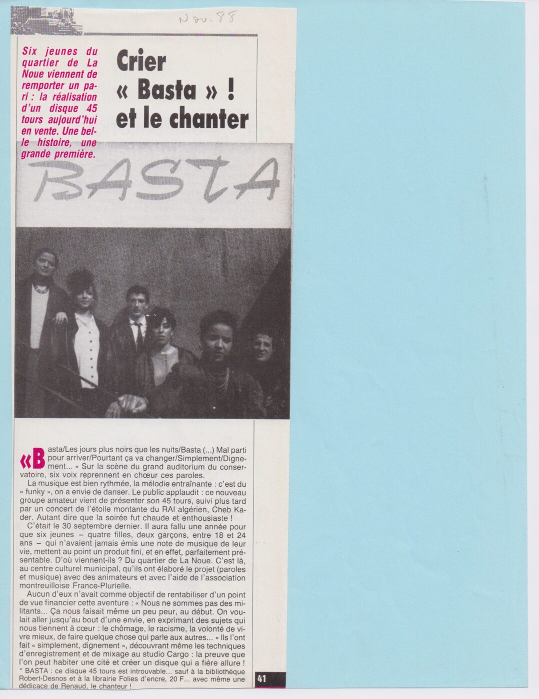 Six jeunes du quartier de la Noue viennent de remporter un pari : la réalisation d’un dique de 45 tours aujourd’hui en vente.
