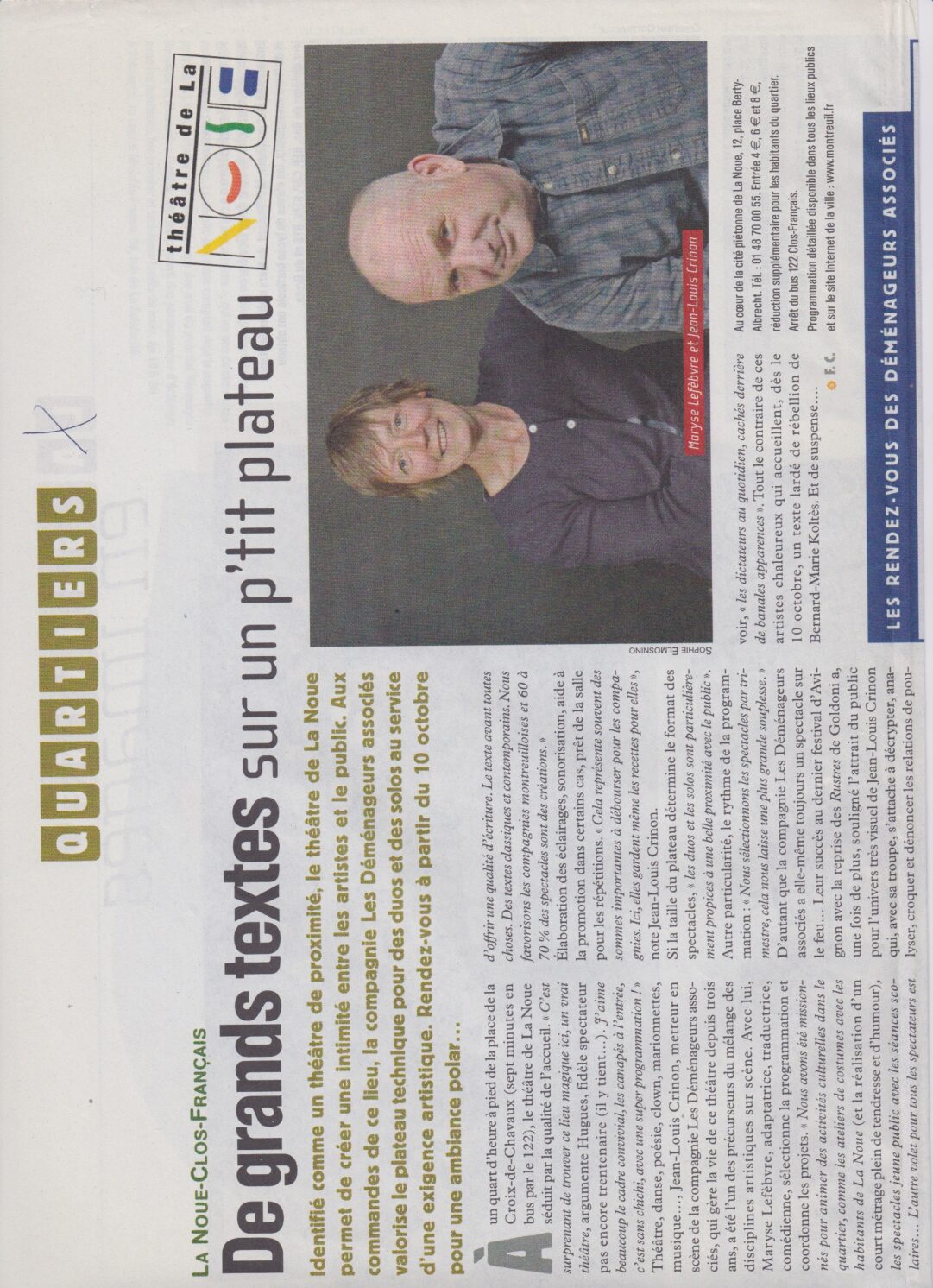 Identifié comme un théâtre de proximité, le Théâtre de la Noue permet de créer une intimité enre les artistes et les habitants.